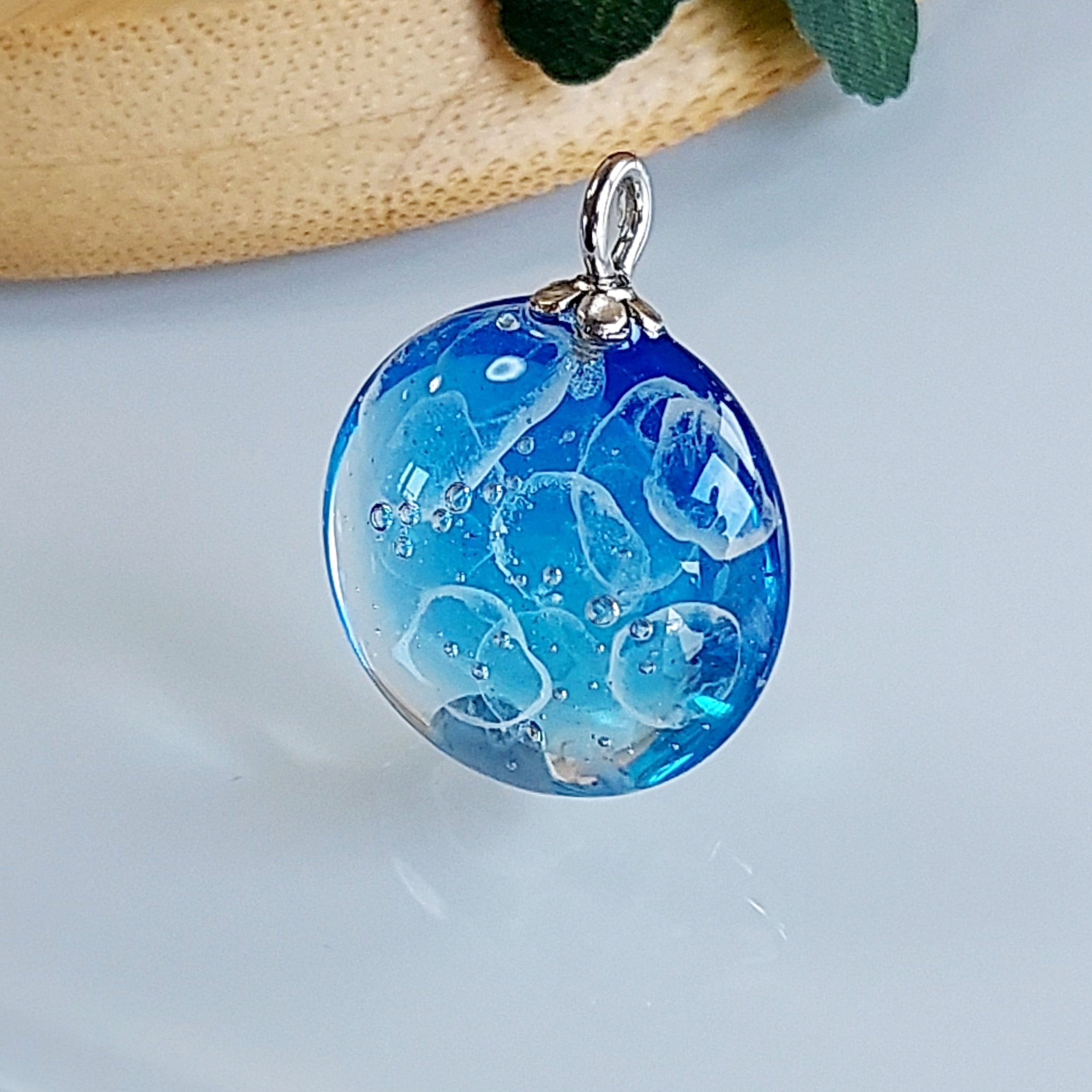 ぷっくりサークル*アクアリウムネックレス(ブルー*ライトブルー)