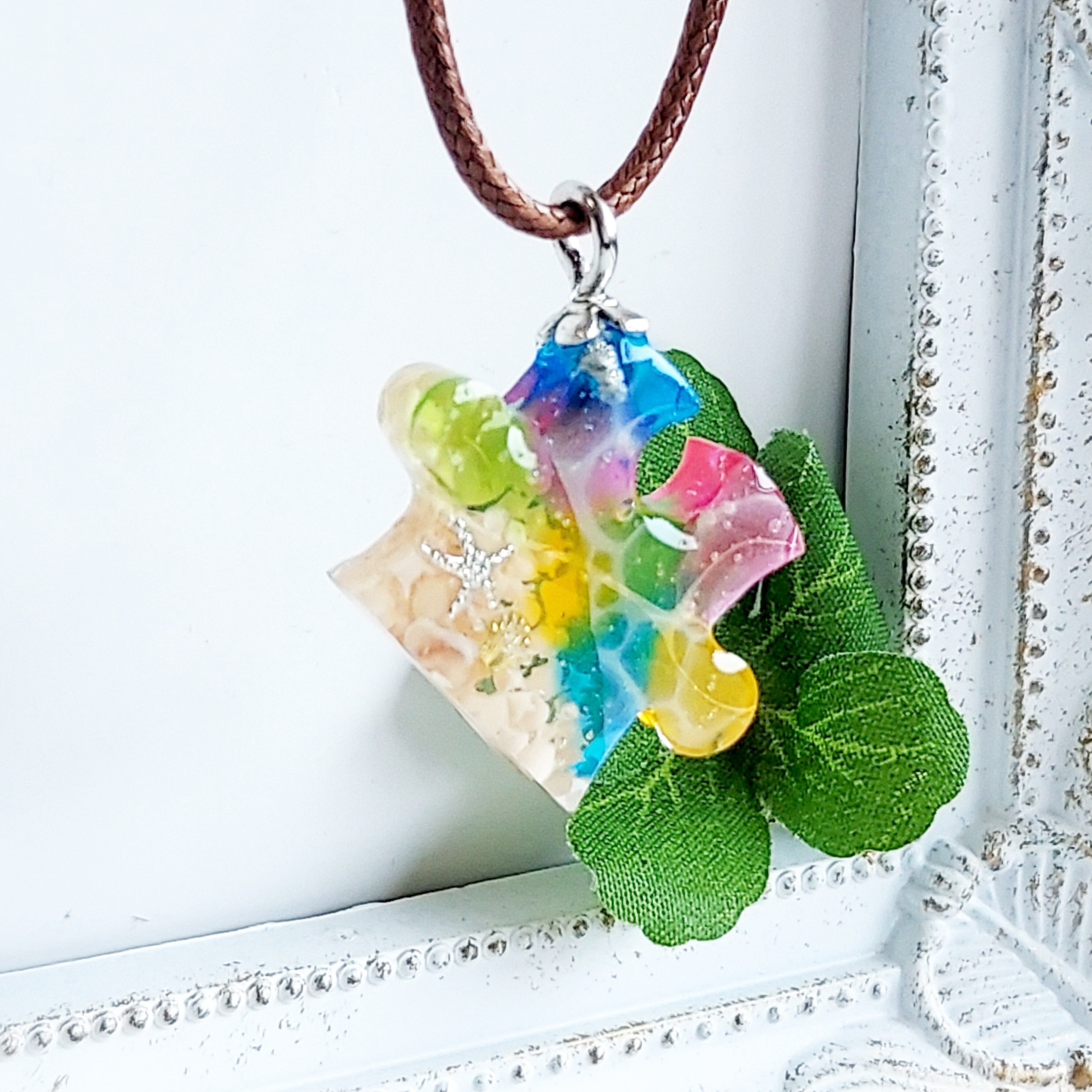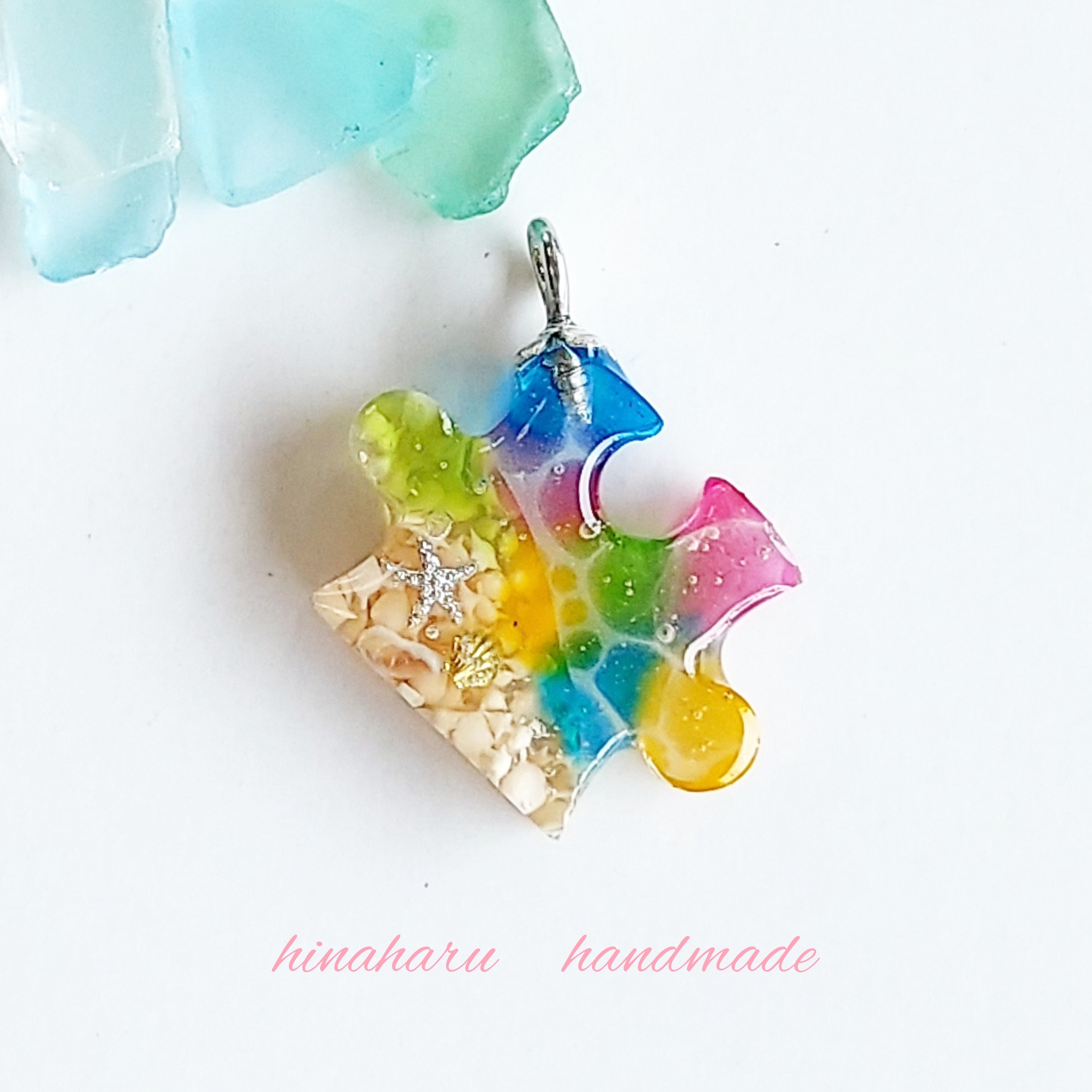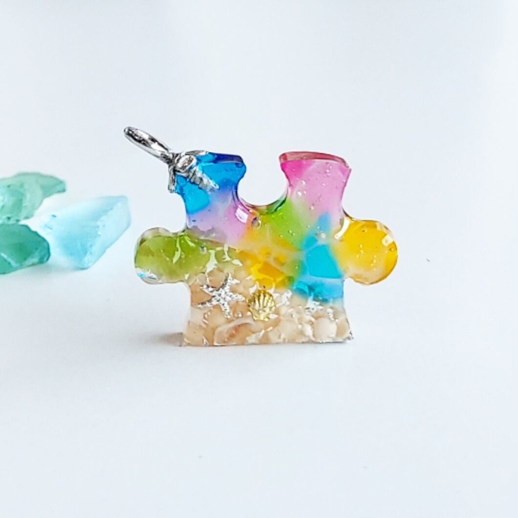 海の浜辺と波模様をジグソーパズル型にとじ込めたネックレスです。