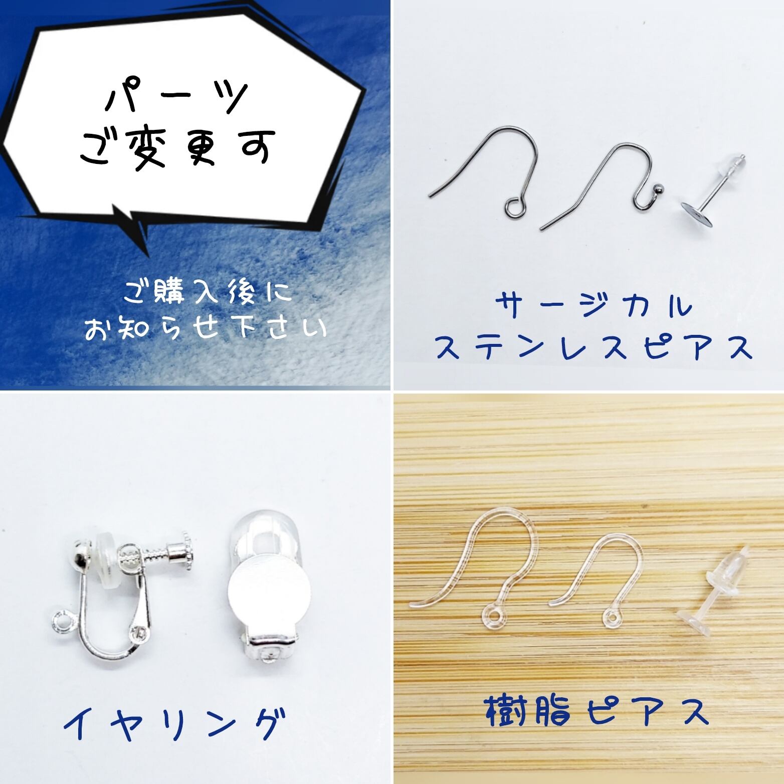 ご希望の方はイヤリング、樹脂フックへのご変更頂けますので、オプションのご選択をお願い致します。
