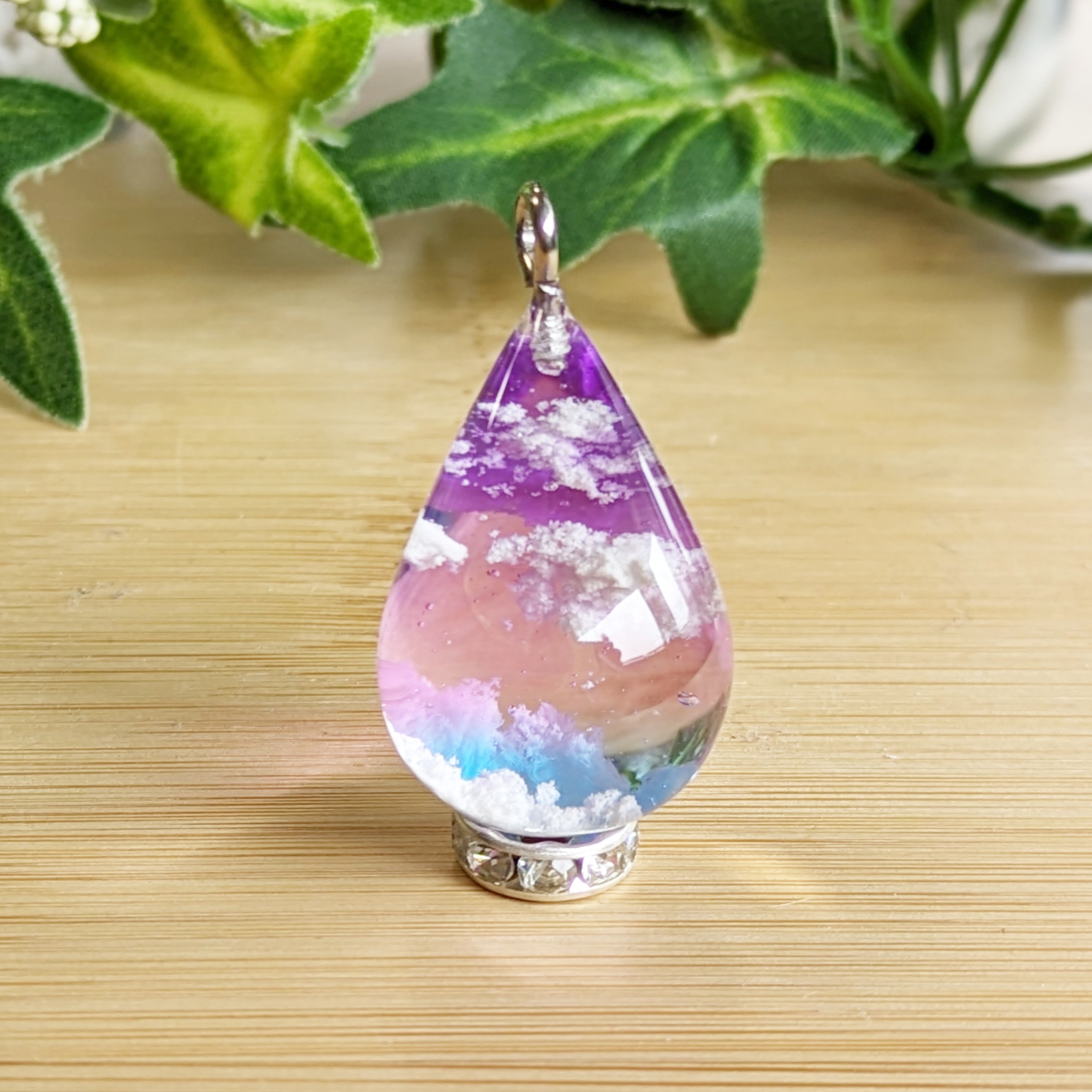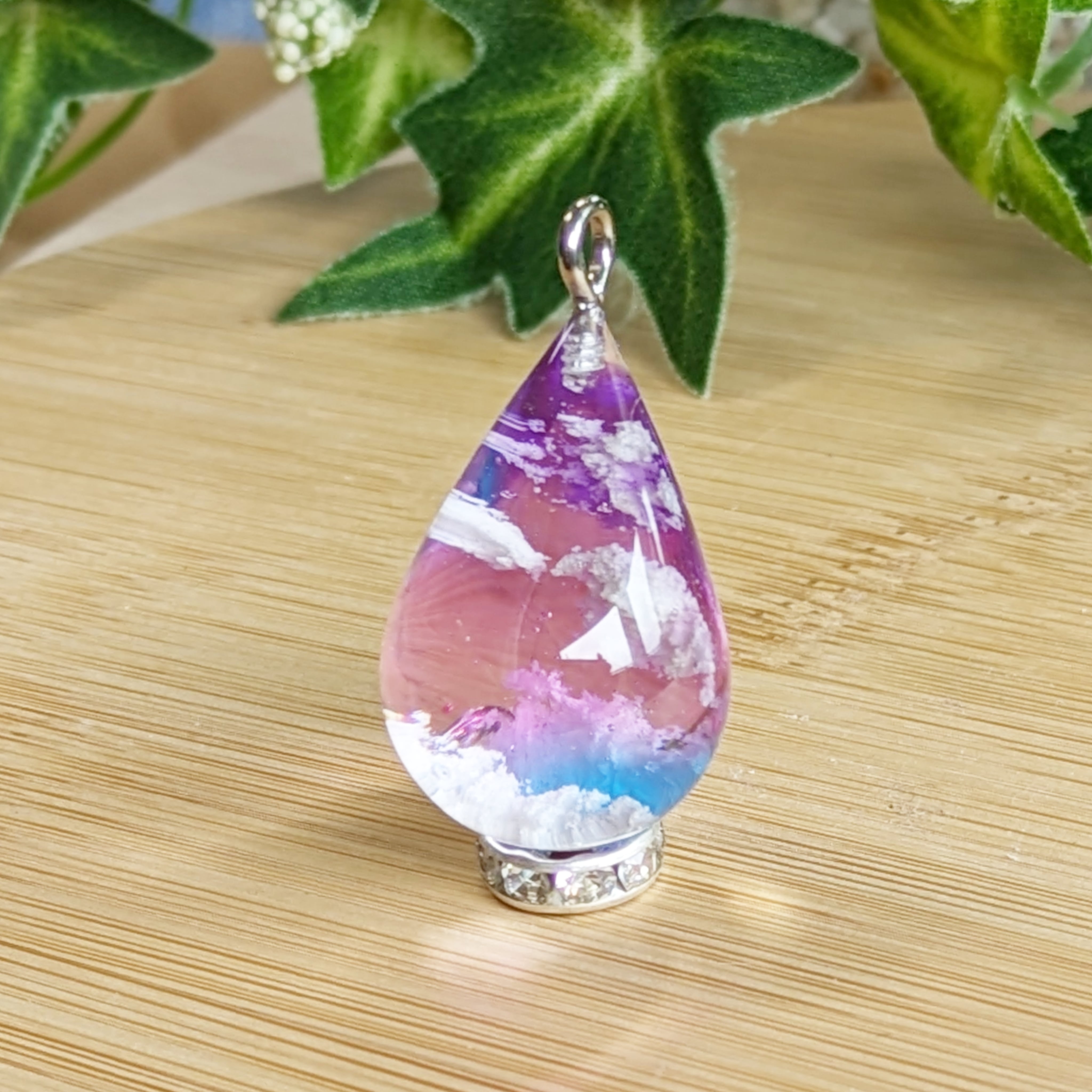 茜空にひろがる雲をドロップ型にとじ込めたネックレスです。