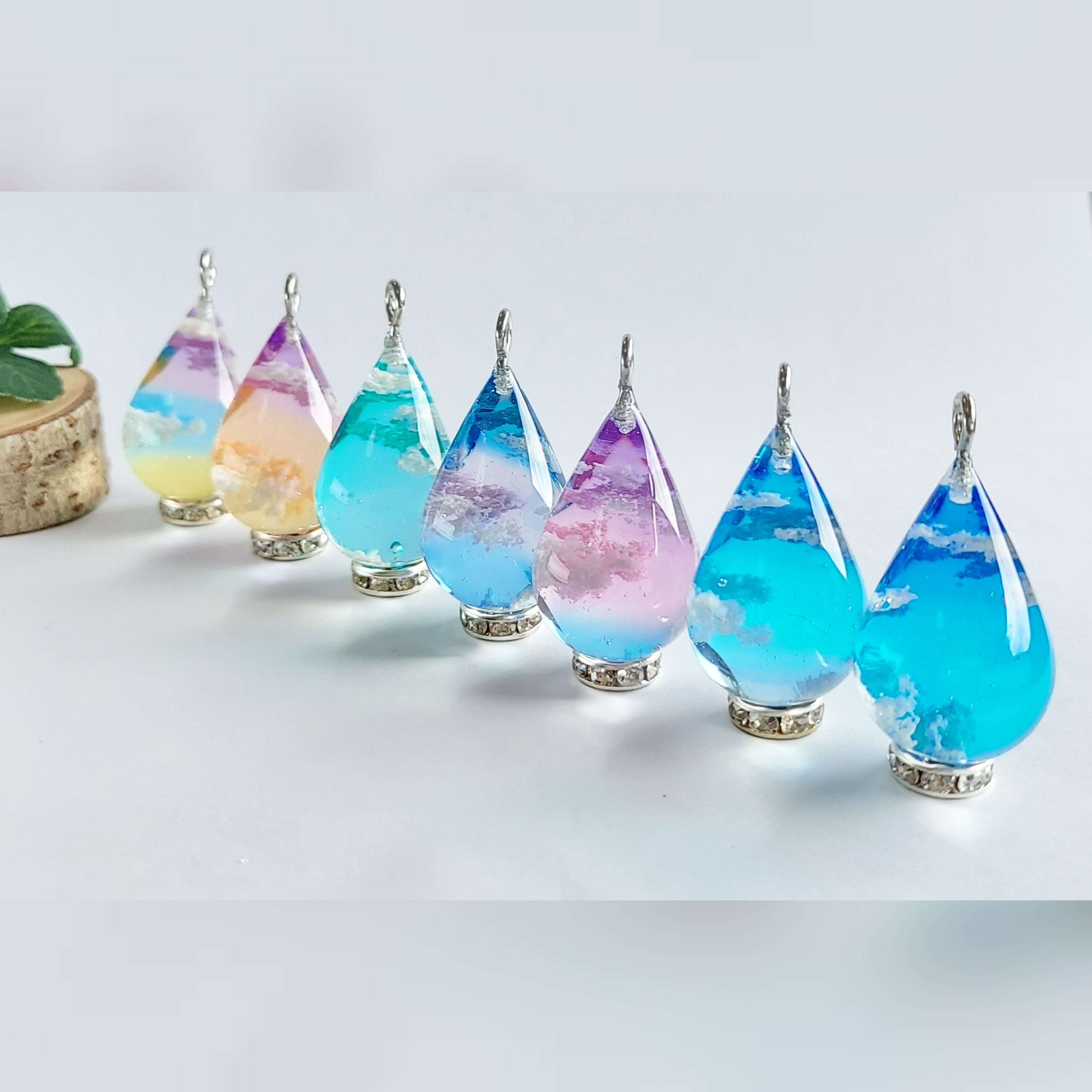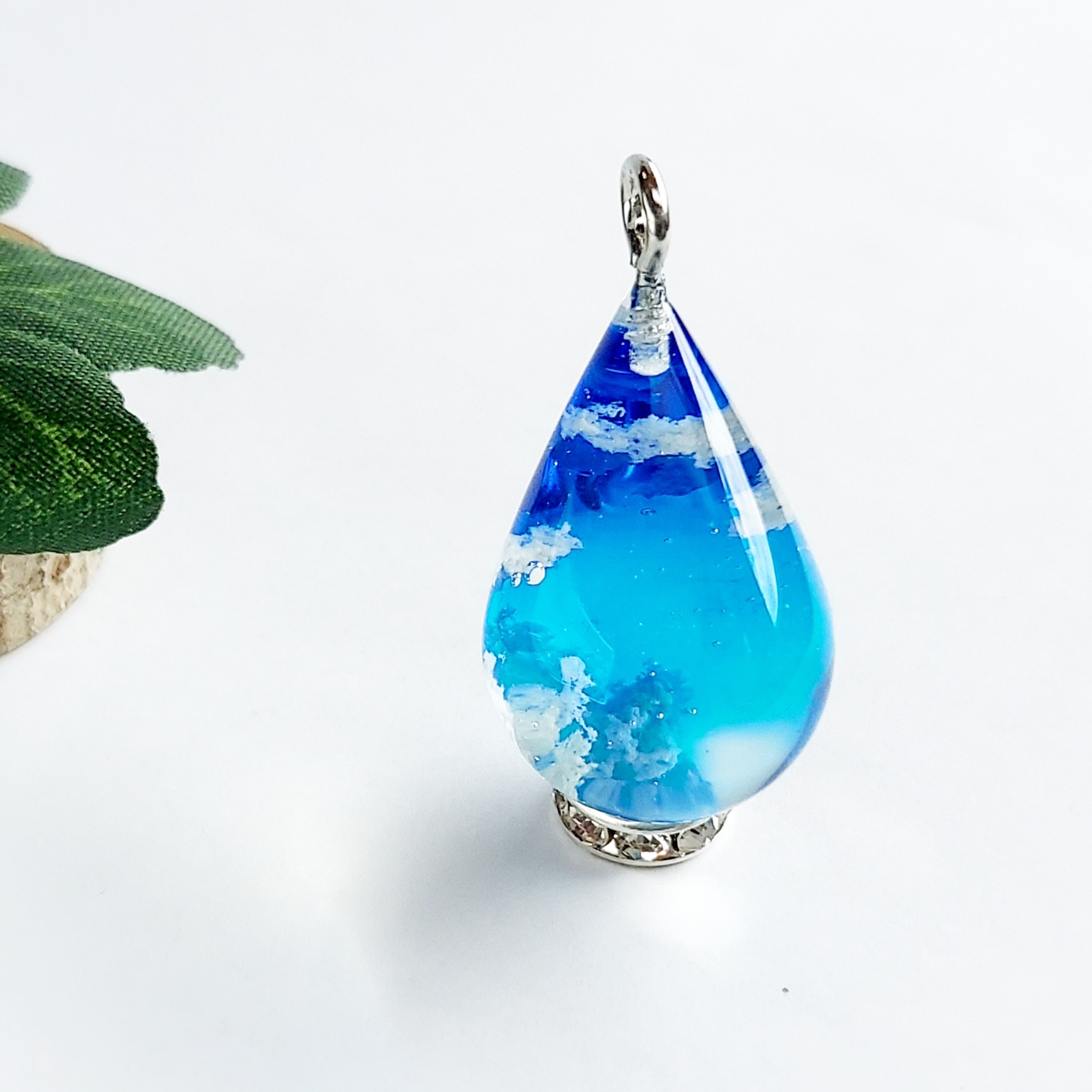 紺碧な青空にひろがる雲をドロップ型にとじ込めたネックレスです。