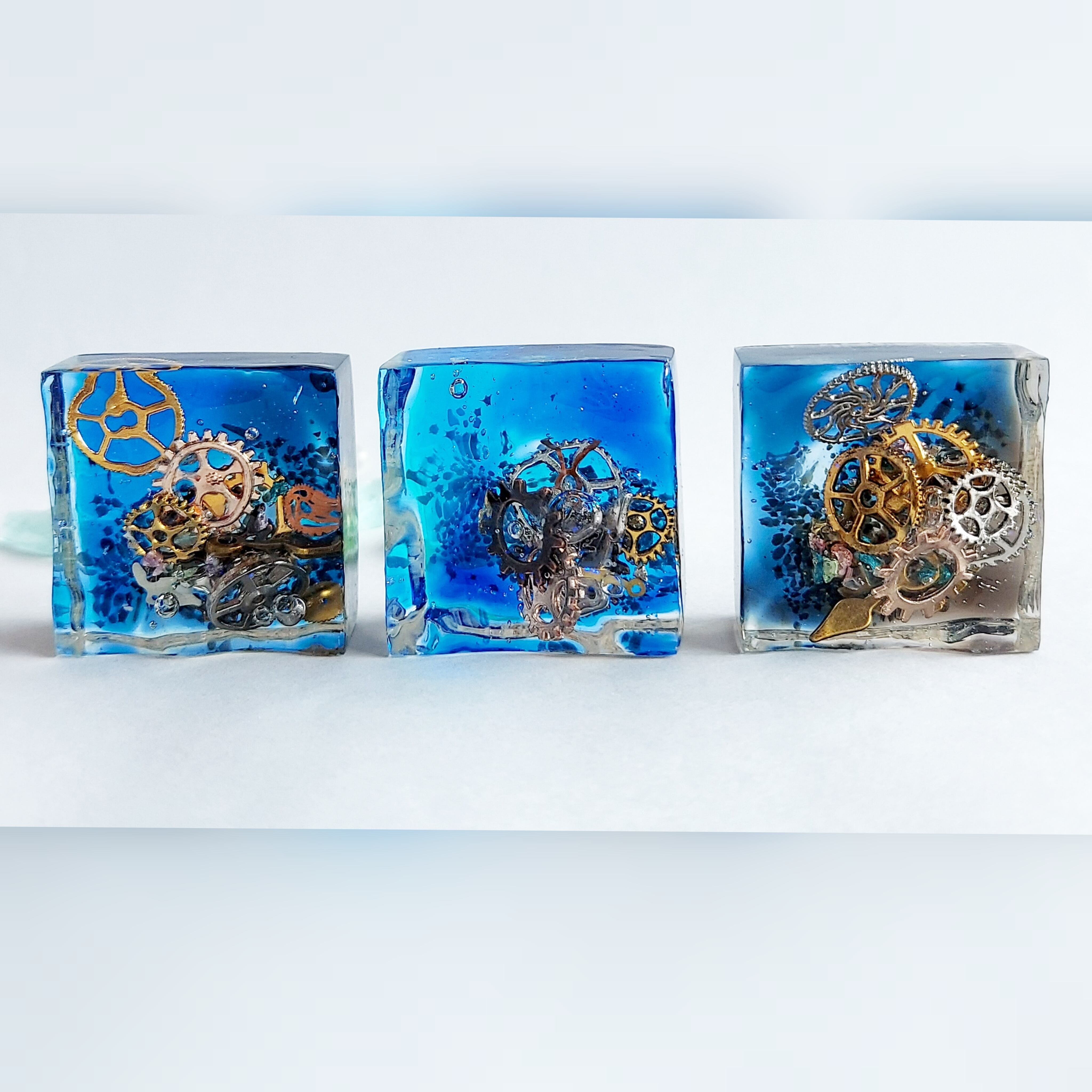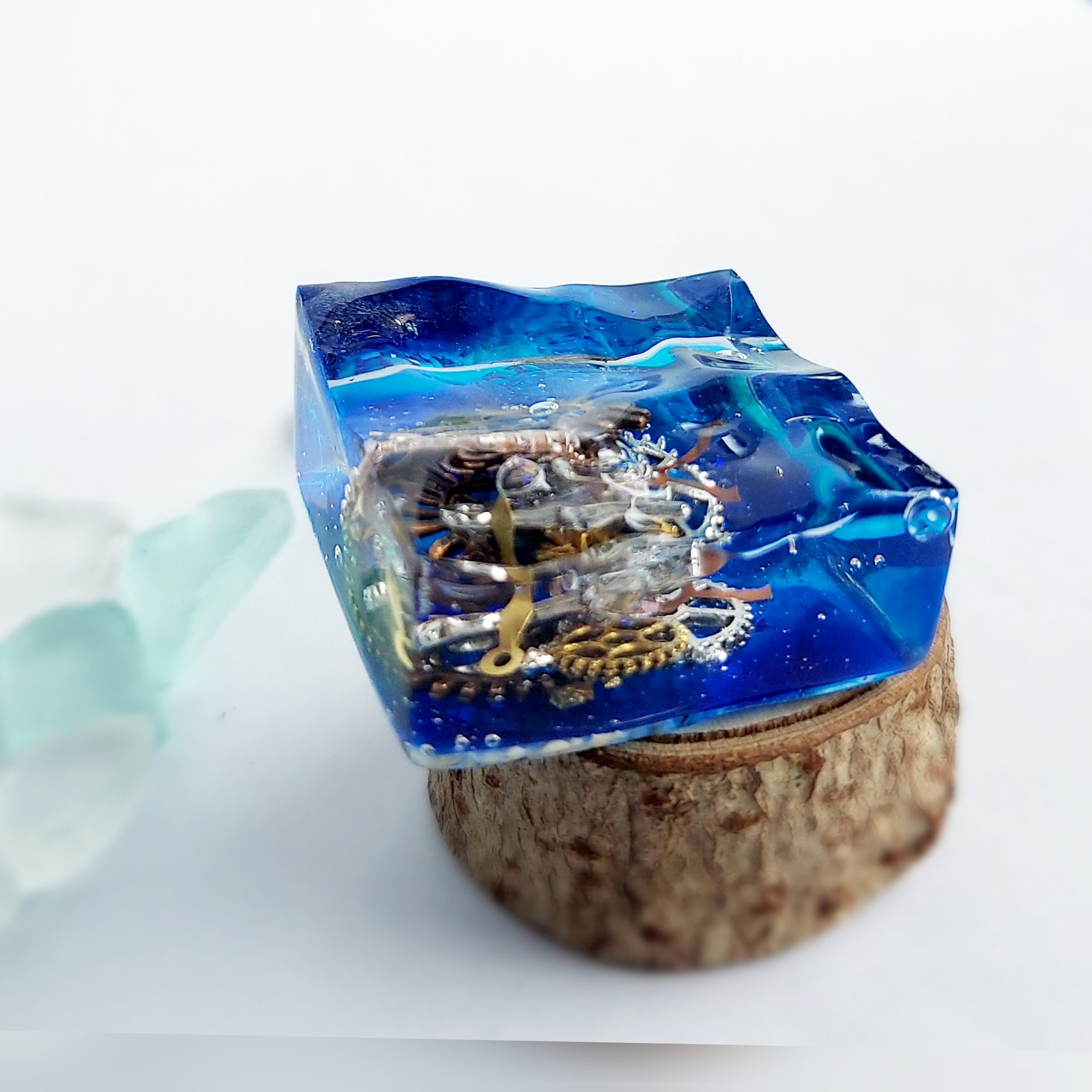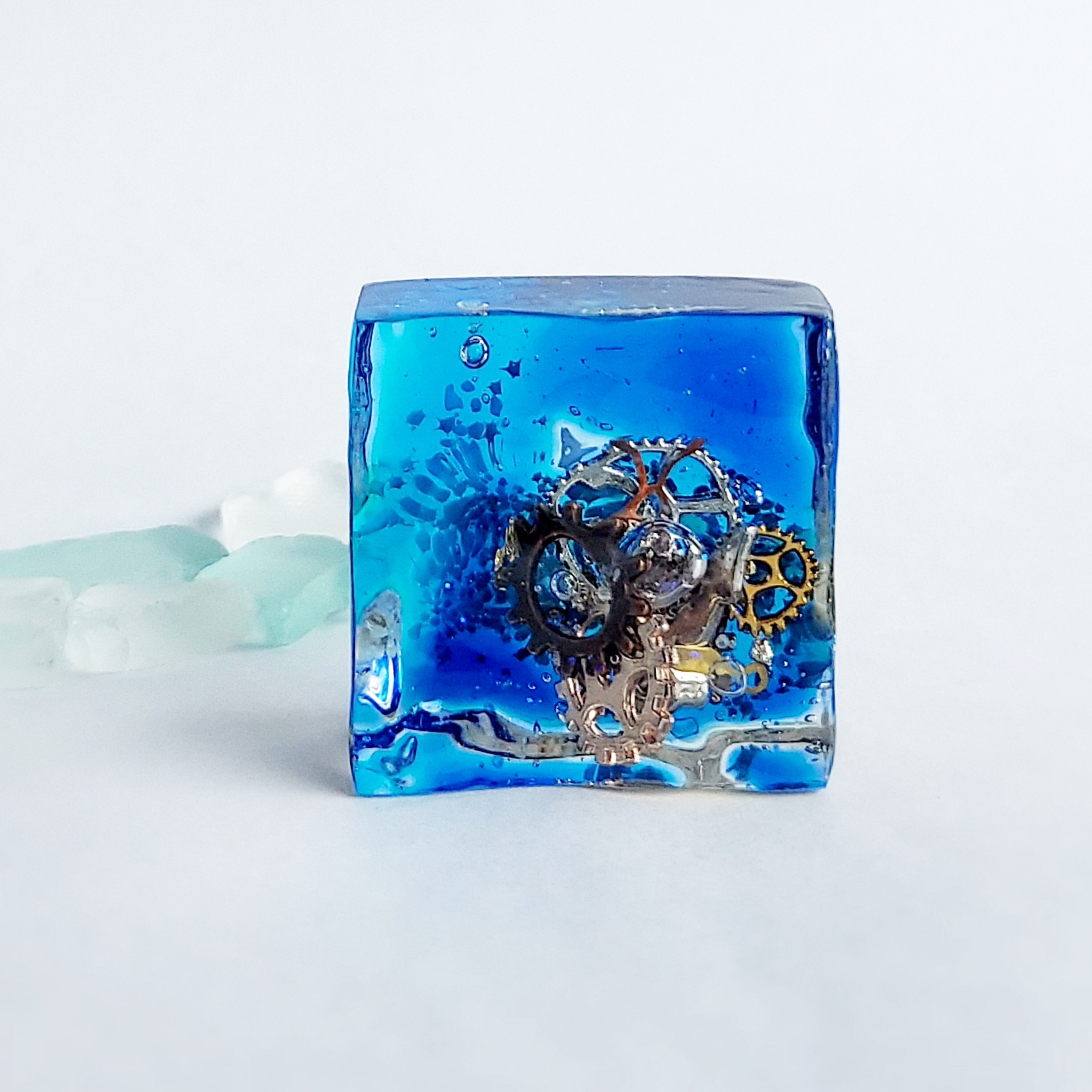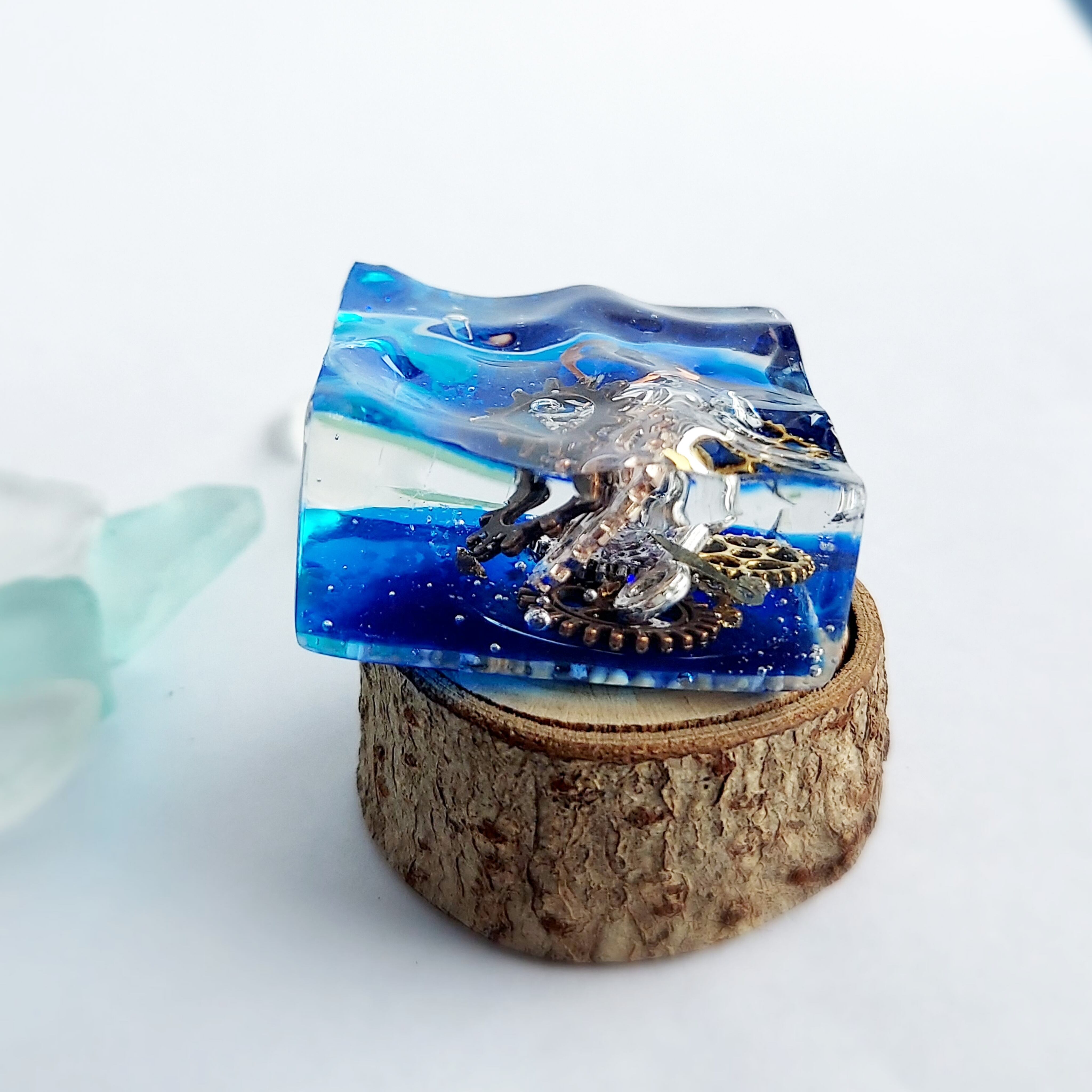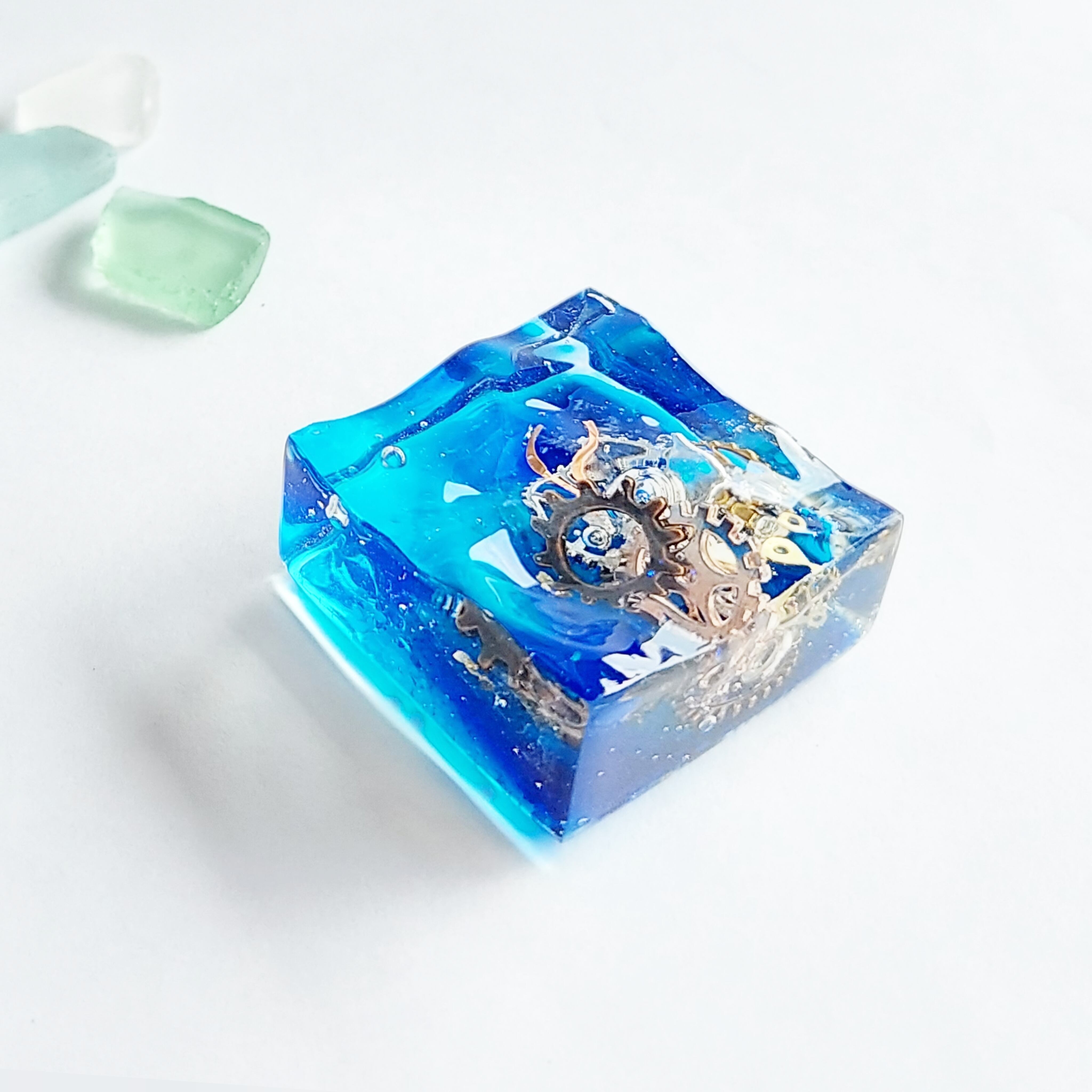 波形スクエア*海*スチームパンクレジンアート(ブルー*ライトブルー)