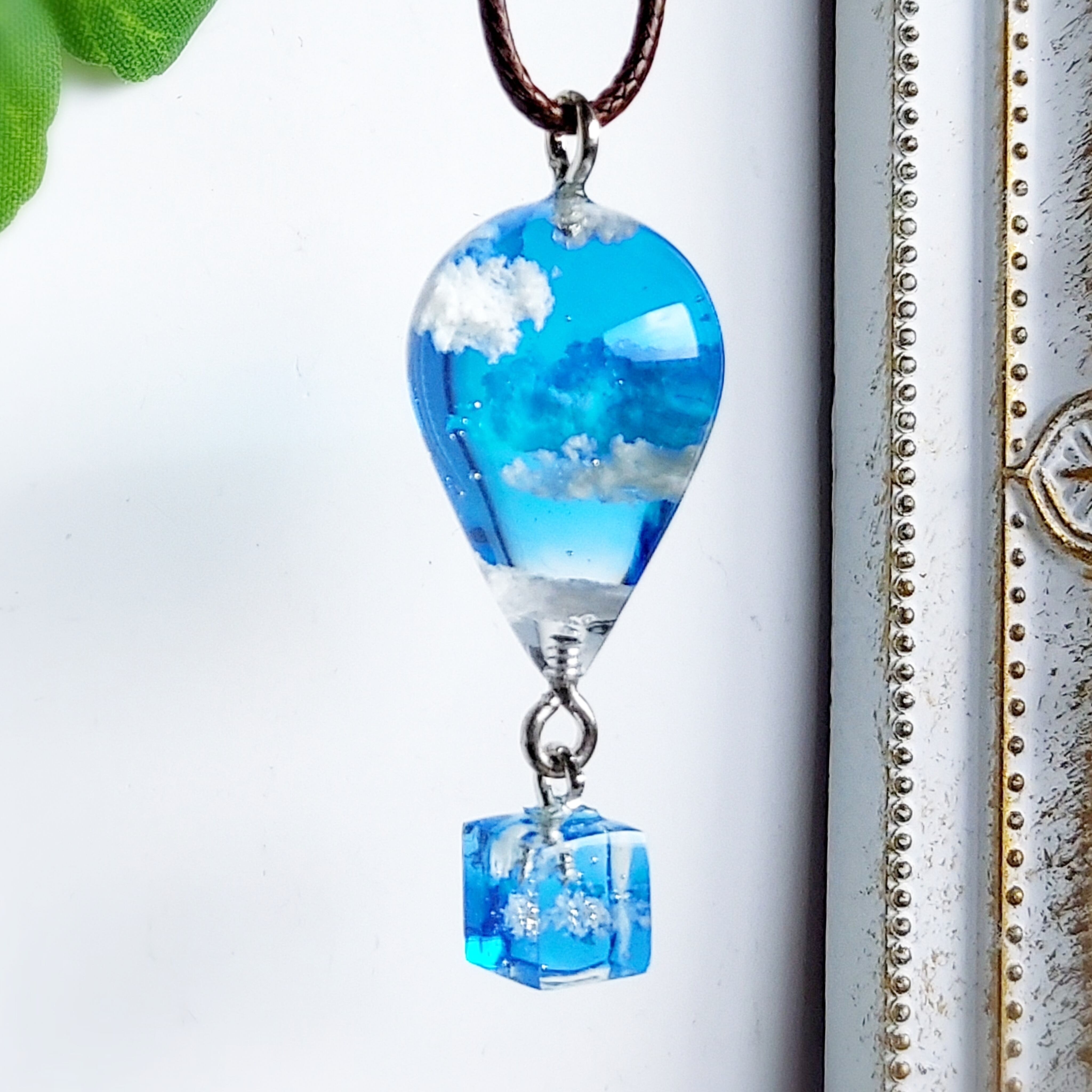 青空にひろがる雲と、空飛ぶくじらをバルーン型に閉じ込めたネックレスです。