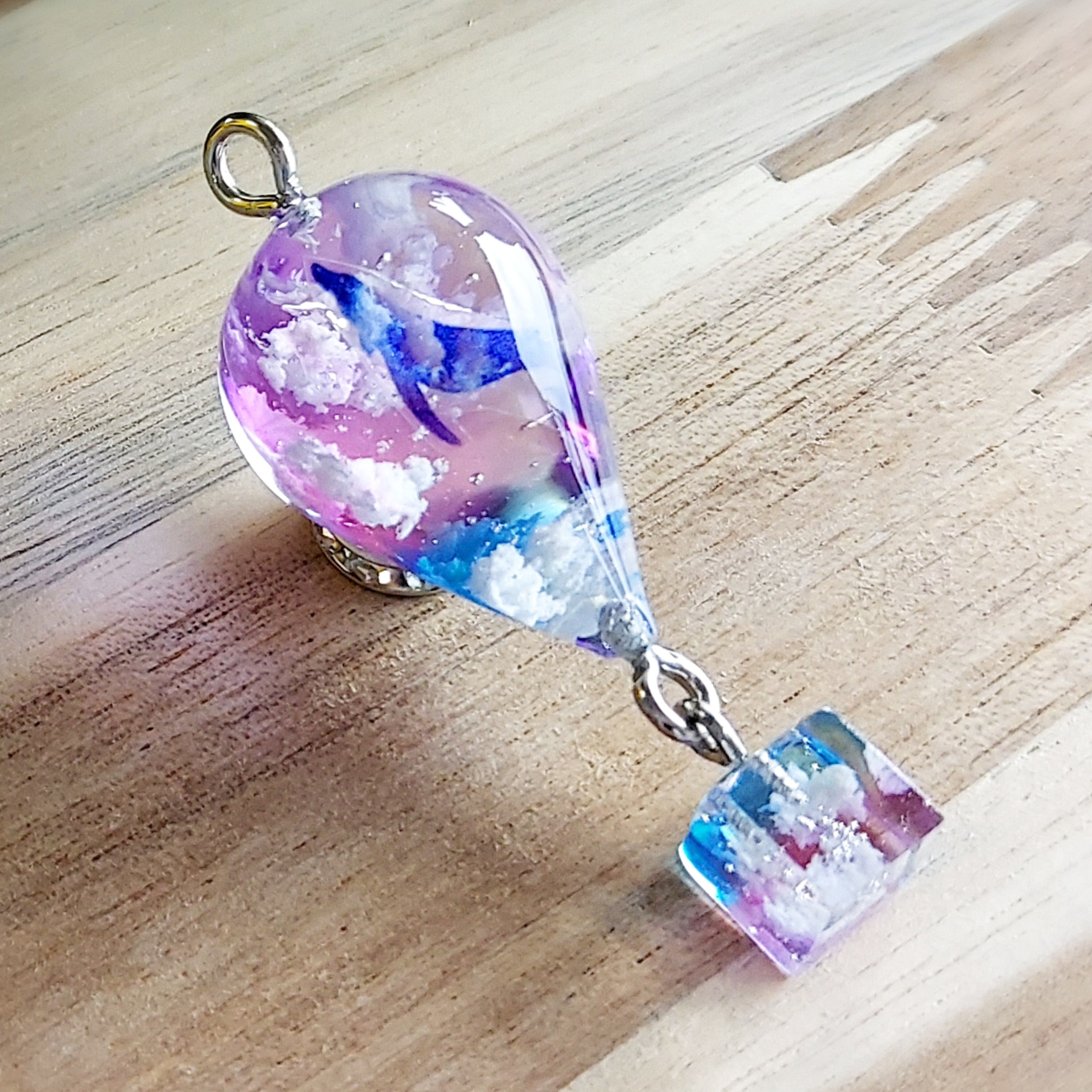 茜空にひろがる雲と、空飛ぶくじらをバルーン型に閉じ込めたネックレスです。